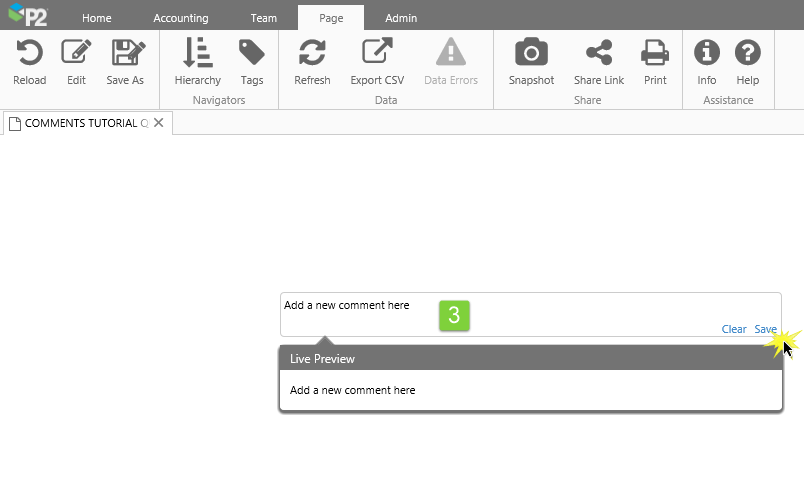 3. In Display Mode, type a comment in the edit box, then click Save or press Enter.