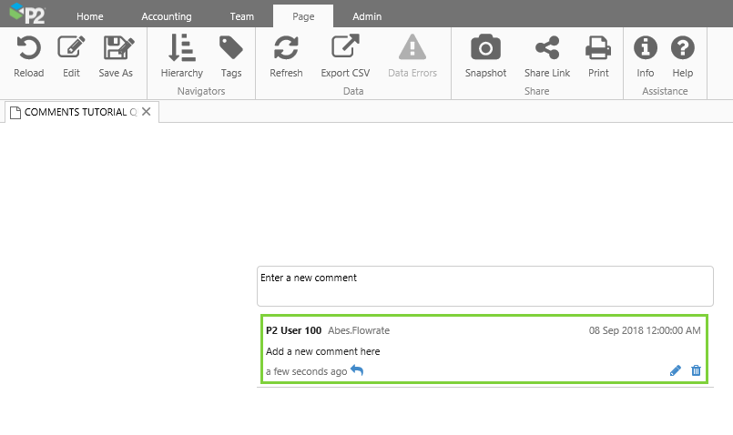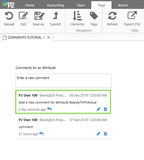 2. Type a comment in the edit box for the second of the new comments components, then click Save or press Enter.
