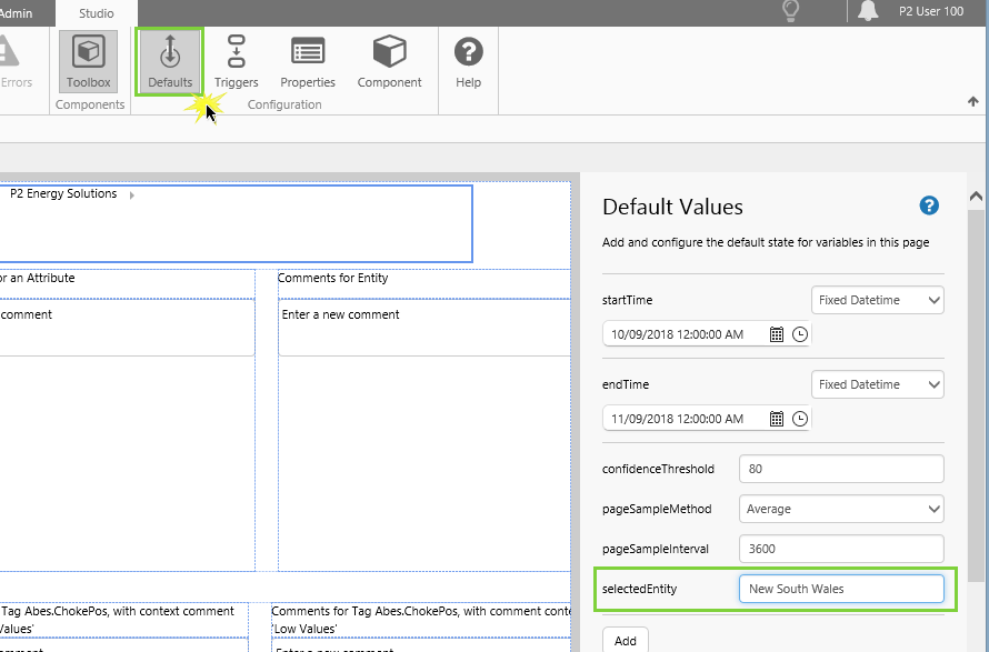 For the selectedEntity variable, update it to specify New South Wales (this is in the P2 Corporate hierarchy).