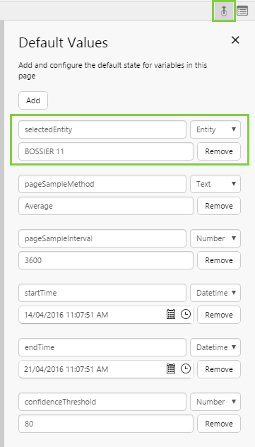 For Data, click the field to use the Data Selector. Staying on the Value tab, click the Variable button, and choose selectedEntity from the drop-down list. Click out of the Data Selector and click Add.