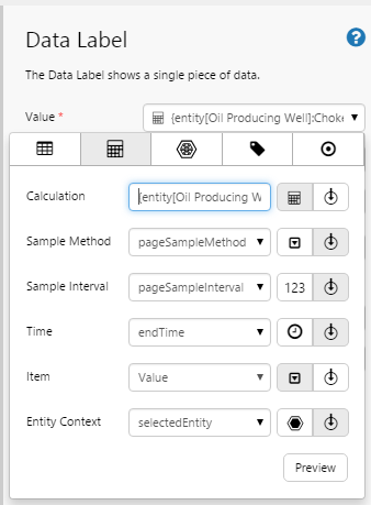Note that we have already filtered the entity selector to use entities with the Oil Producing Well template, which means that any entity you click will work for the calculation.