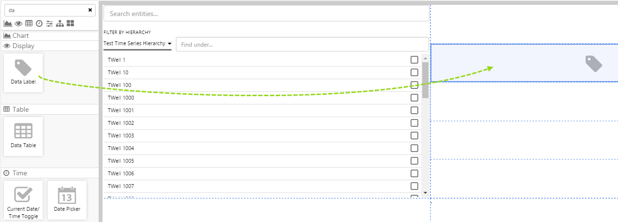 3. Add a Data Label: Drag and drop a Data Label component onto a grid cell. The Data Label is in the Display Display group icon group.
