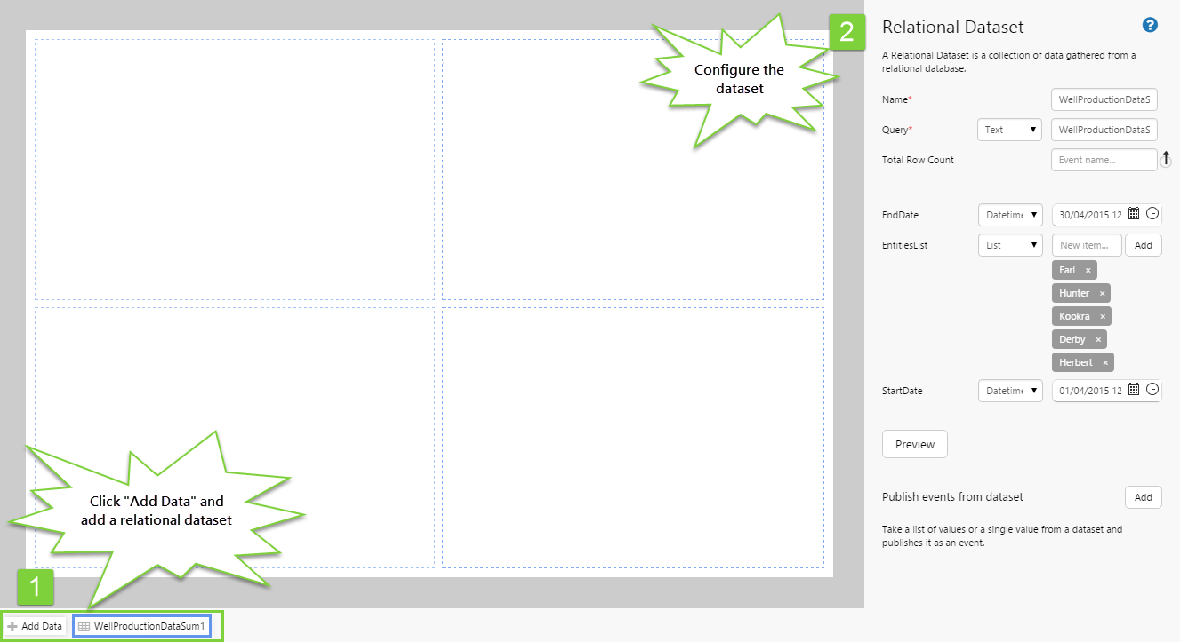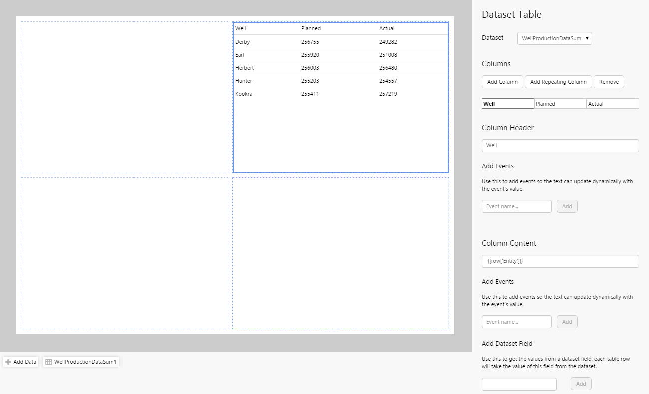 • Add the WellProductionDataSum1 dataset, and configure it as follows: