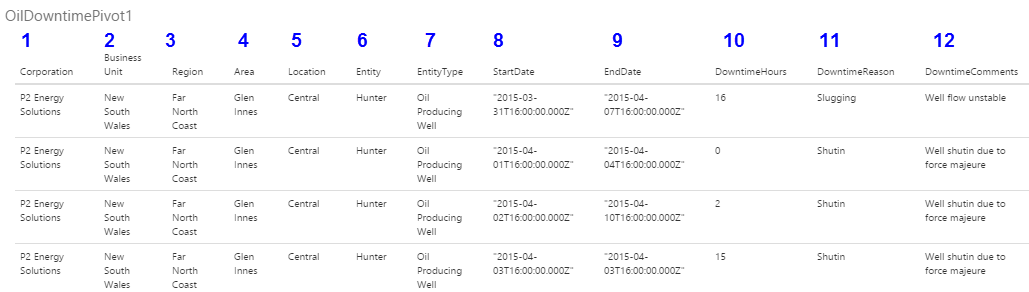 • Query: (Text) OilDowntimePivot