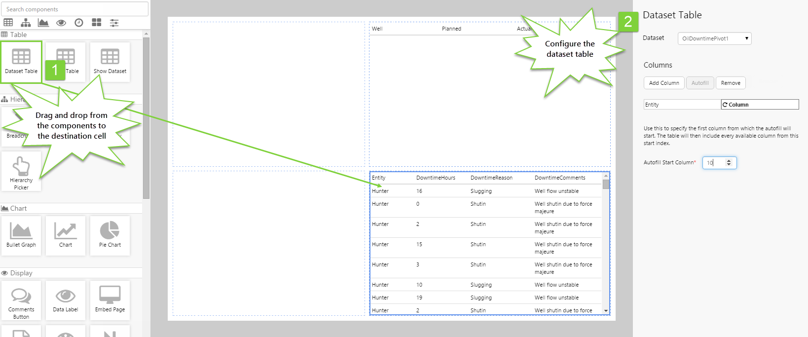 Step 2.  Add and configure the Dataset Table component