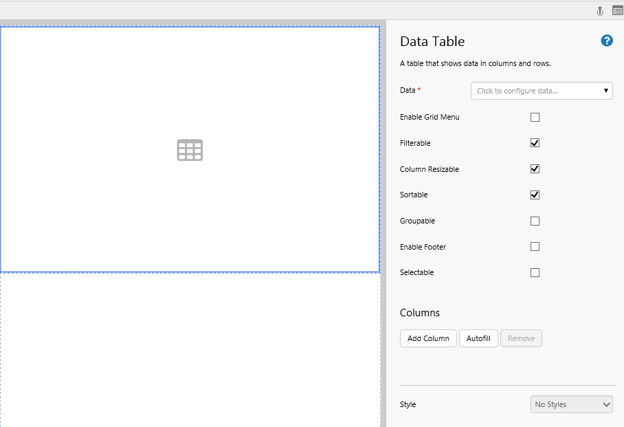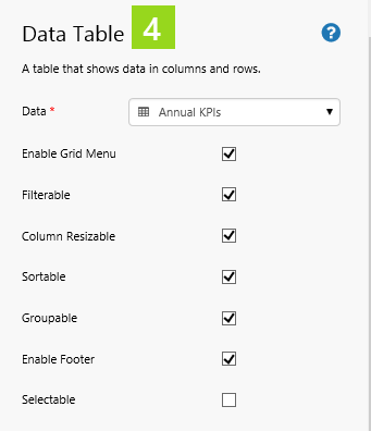 Jump to: Options for Configuring a Data Table's Data.
