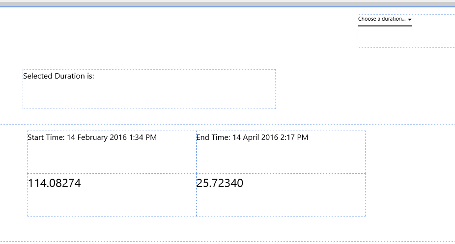 1. Drag a Duration Picker component onto the top right of the Precision Layout, as shown. The Duration Picker is in the Time