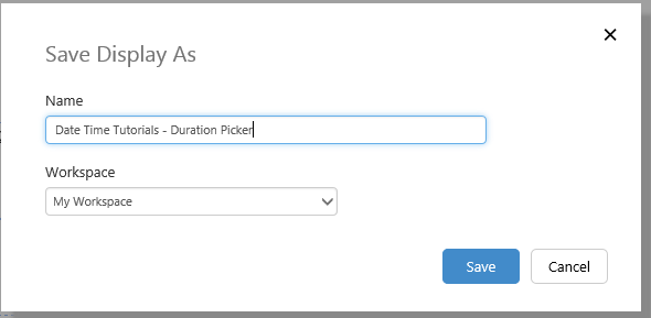 Save the page as "Date Time Tutorials - Duration Picker" in your private workspace, My Workspace.