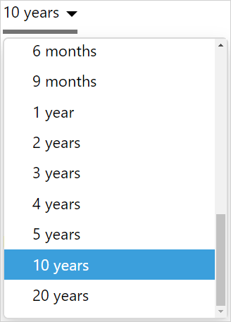 In version 4.13, the available time periods in the Duration Picker have been expanded to include 3, 4, 5, 10 and 20 years.
