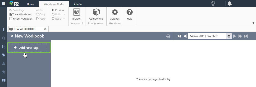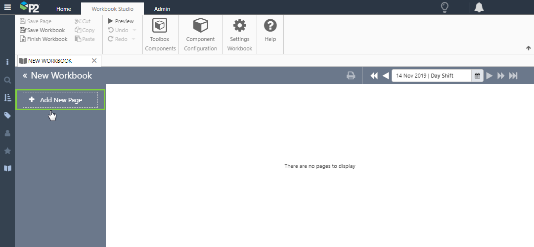 • Site: The name of the site this workbook applies to. The selection list is configured in P2 Server Management. You need to select a site and shift pattern for the shift picker to understand what shift periods to show.