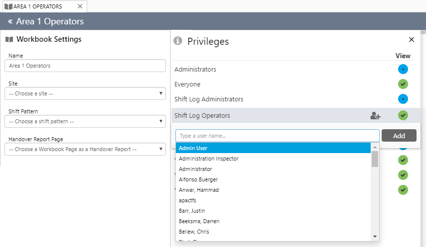 Workbook settings allow you to specify which shift pattern to use and who has access to the workbook.