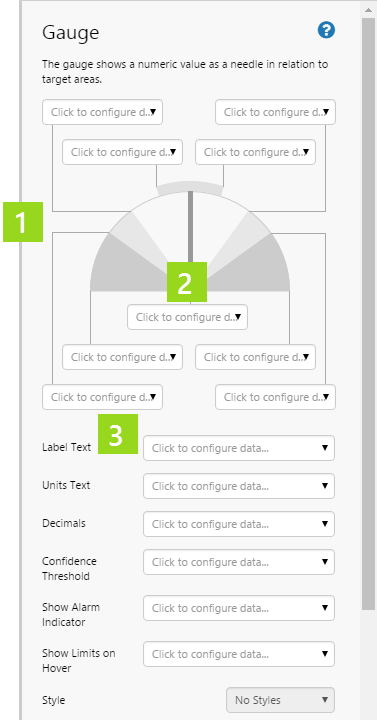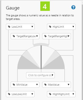 6. Configure the appearance of the gauge. For each separate property, use the Data Selector to select Value Data.