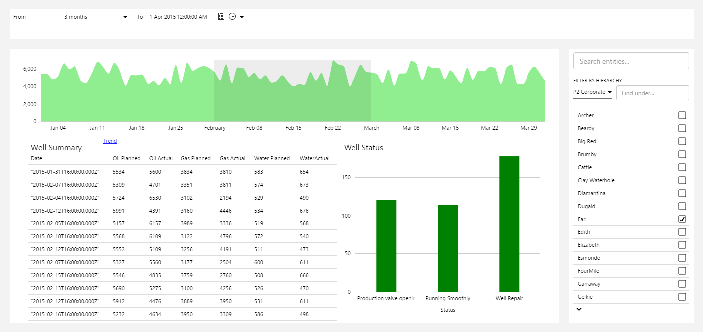 We're nearly done, but you might have noticed in the original dashboard picture, the top right chart actually has some other links to the right of the title (Oil, Gas, NGL). Let's just quickly create a layout for those links.