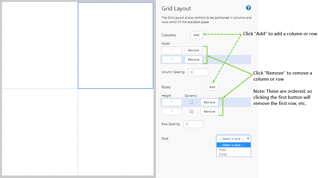 Style The style you want to apply to the grid layout. If you are a Style Administrator, you can add a new Grid Layout style.