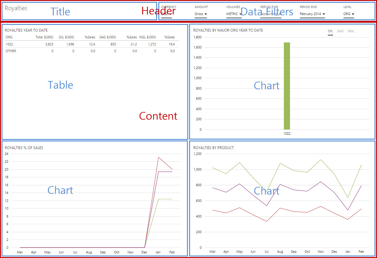 The image below left (Breakdown #1) shows you that this dashboard actually follows the first simple structure shown in the layout examples above.