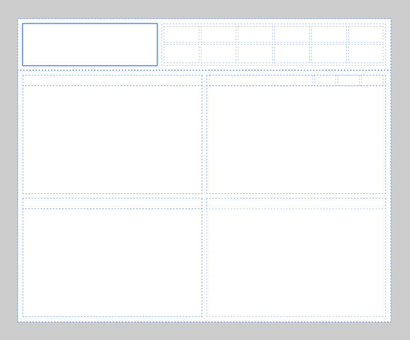 Let's look at the following dashboard. It's a bit more complicated than the above examples, and makes use of embedding grids inside another grid.