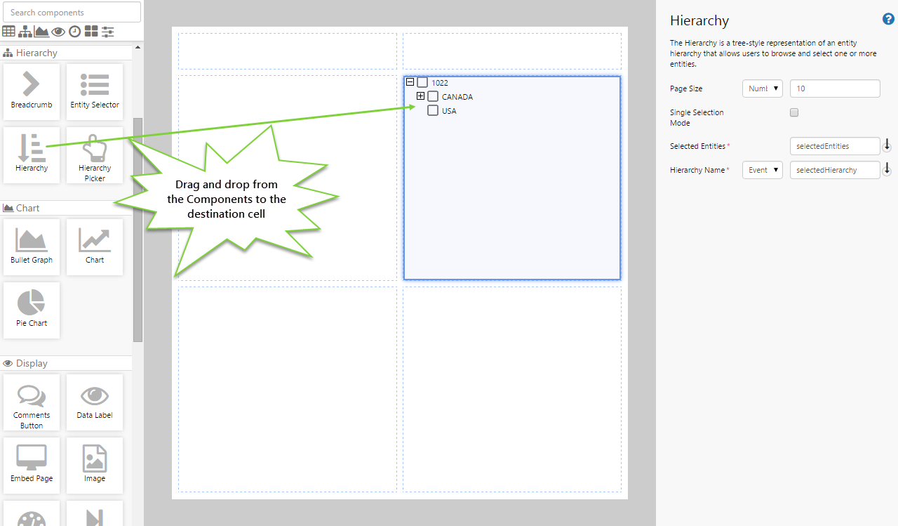 Drag and drop the Hierarchy component onto a grid cell.