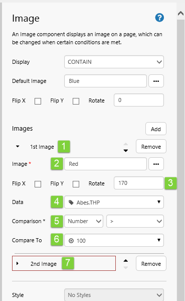 These are the conditional images: 1st Image, 2nd Image, 3rd Image etc. Click Add to add a new conditional image.