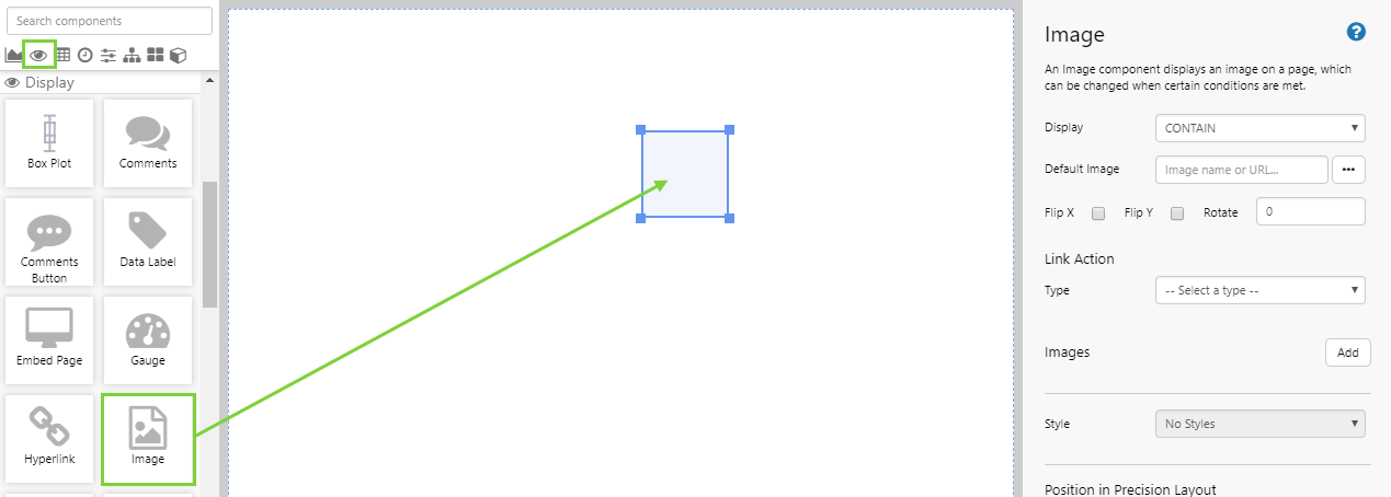 Drag an Image onto the precision layout. The Image is in the Display