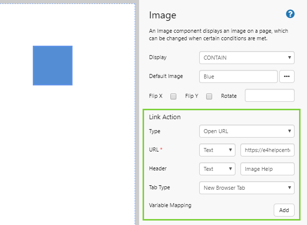 | URL | Select Text from the drop-down list, and then type https://oihelp.corporate.ifs.com/help/p2-explorer/explorer-studio/controls/image/ in the text box. |