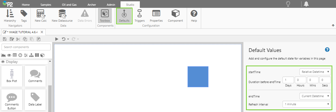 | endTime | Choose Current Datetime, and set the Refresh Interval to 1 minute. This is the default for new pages. |