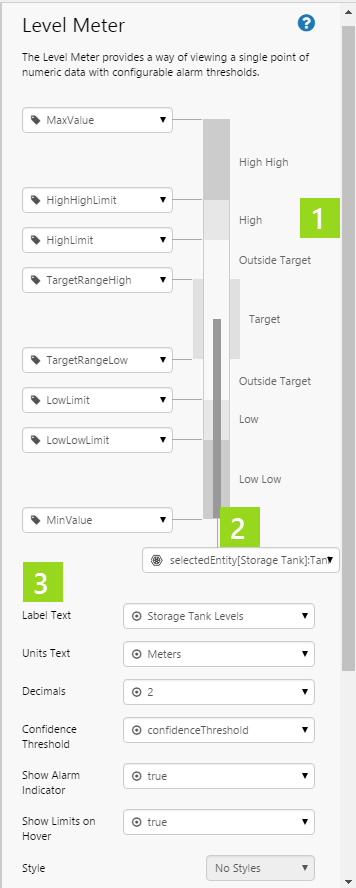 Show Limits on Hover: Select this option (set to true) if you want limits to appear when the user hovers the mouse over the level meter.
