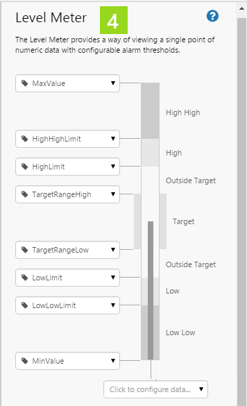 6. Configure the appearance of the level meter. For each separate property, use the Data Selector to select Value Data.