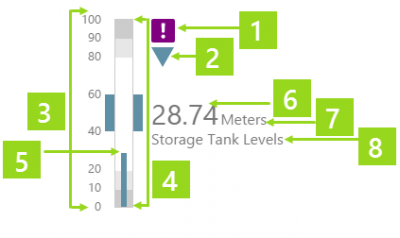 For example, you can configure a level meter to compare the actual value of the selected storage tank's level against limits defined for that tank, or against tags that contain fixed values for the various limits.