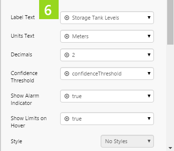 As well as defining the measured values and limits, you can define a label and units, and you can configure whether to show the alarm indicator and the limits.