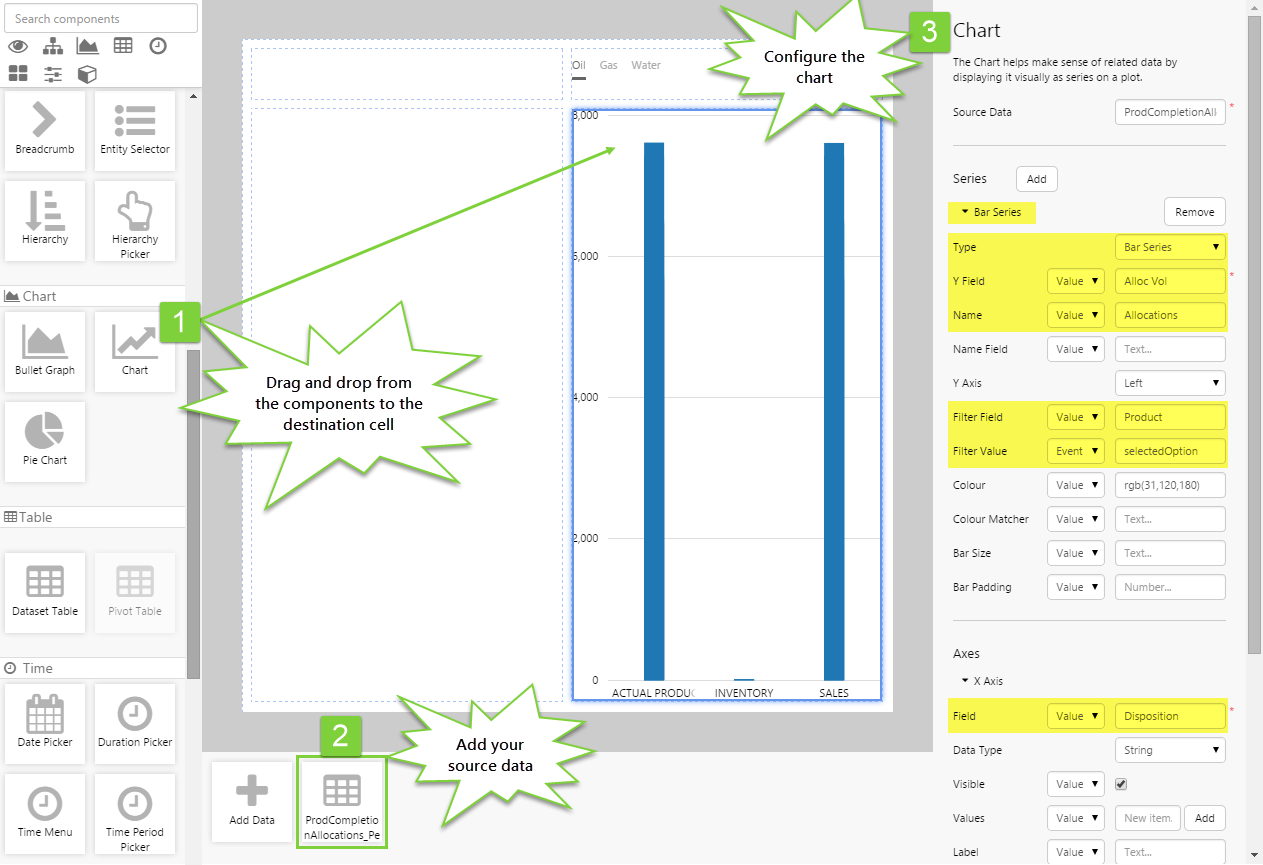 - Add a dataset (e.g. ProdCompletionAllocations_Perth1)