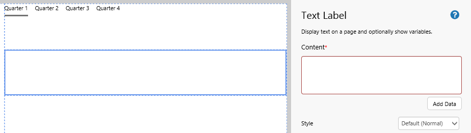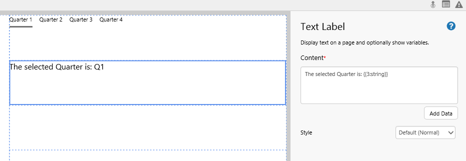 Watch the video below to see how changing the Option Links selections changes the Text Labels' content (the variable portion of the text label: selectedQuarter), in preview mode.