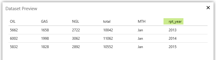 In preview mode, the Option Links shows the rpt_year columns from the query.