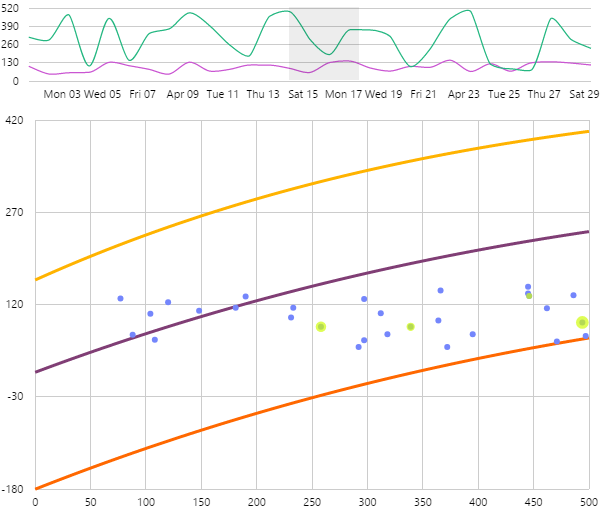 | Highlight Colour | The colour that you want to use when highlighting data points. In the tutorial below, we highlight data points within a certain time period, using a range selector. Tip: Use the opacity setting if you want the highlight to appear as a “halo” around the data point. |