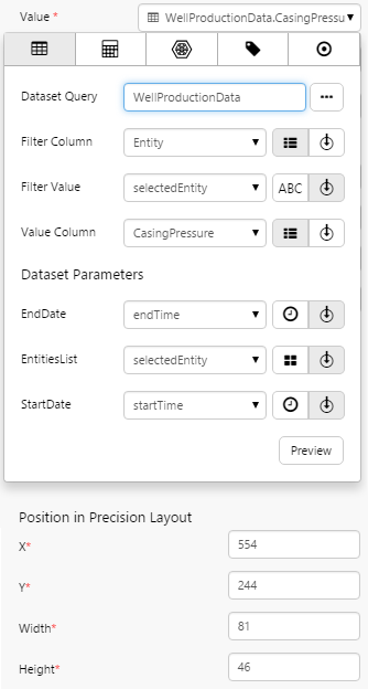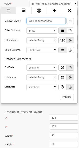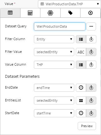 tab is automatically selected. However, for this tutorial, we want to get data from the Well Production Data dataset query, so click the Dataset
