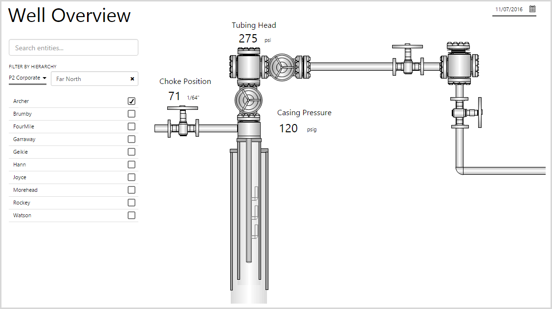 This step adds a date picker to the page, which will drive the data displayed on the schematic.