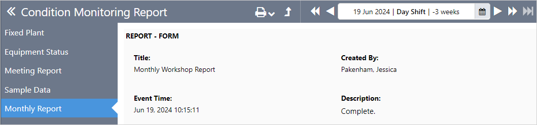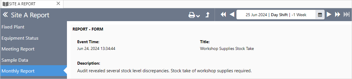 The Report - Form component is designed to display a log entry in a format that is optimized for viewing and printing the entry.