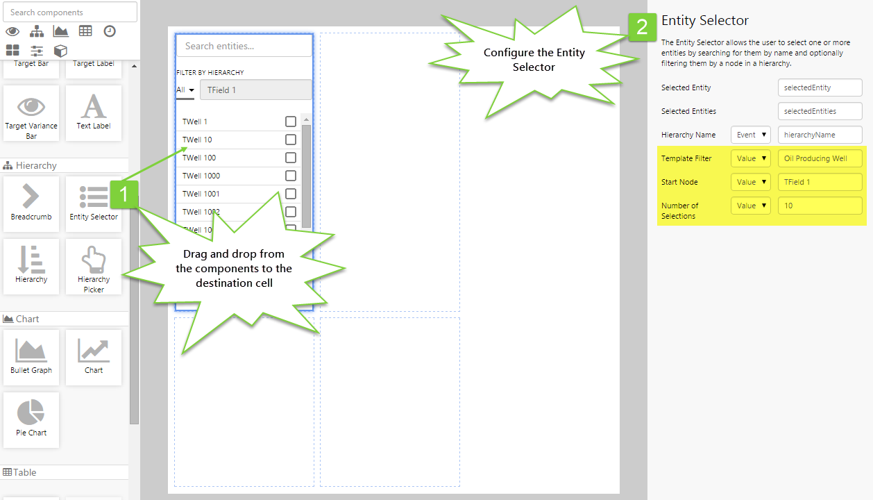 In this tutorial, we'll look at doing just that. We'll create an Entity Selector that allows users to choose a maximum of 10 wells from a long list, and the chosen wells will be displayed by the Selection List.