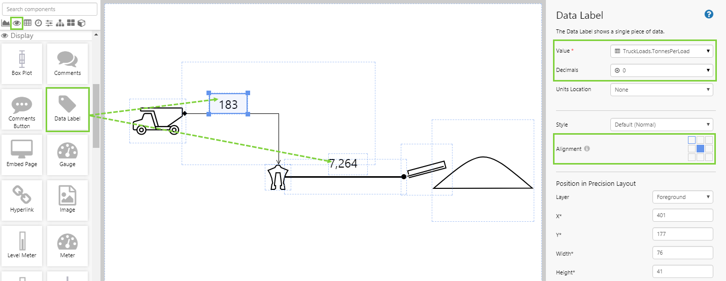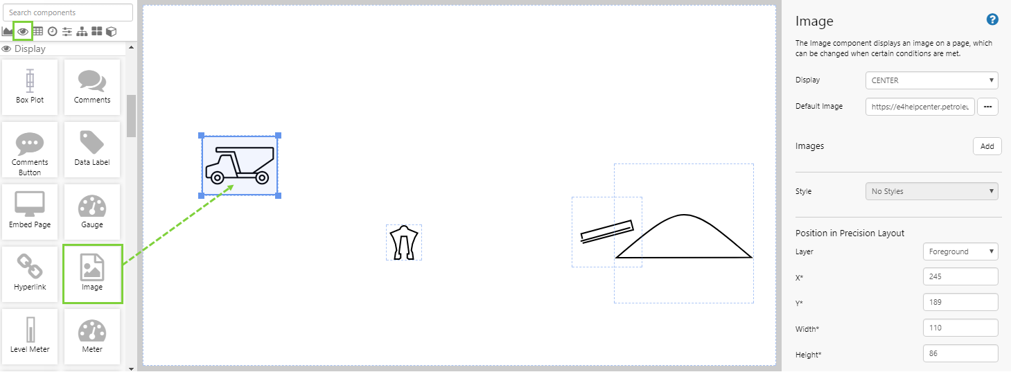 There is no pre-configured image for a truck, so we'll add one using the Image component, which is in the 'Display'