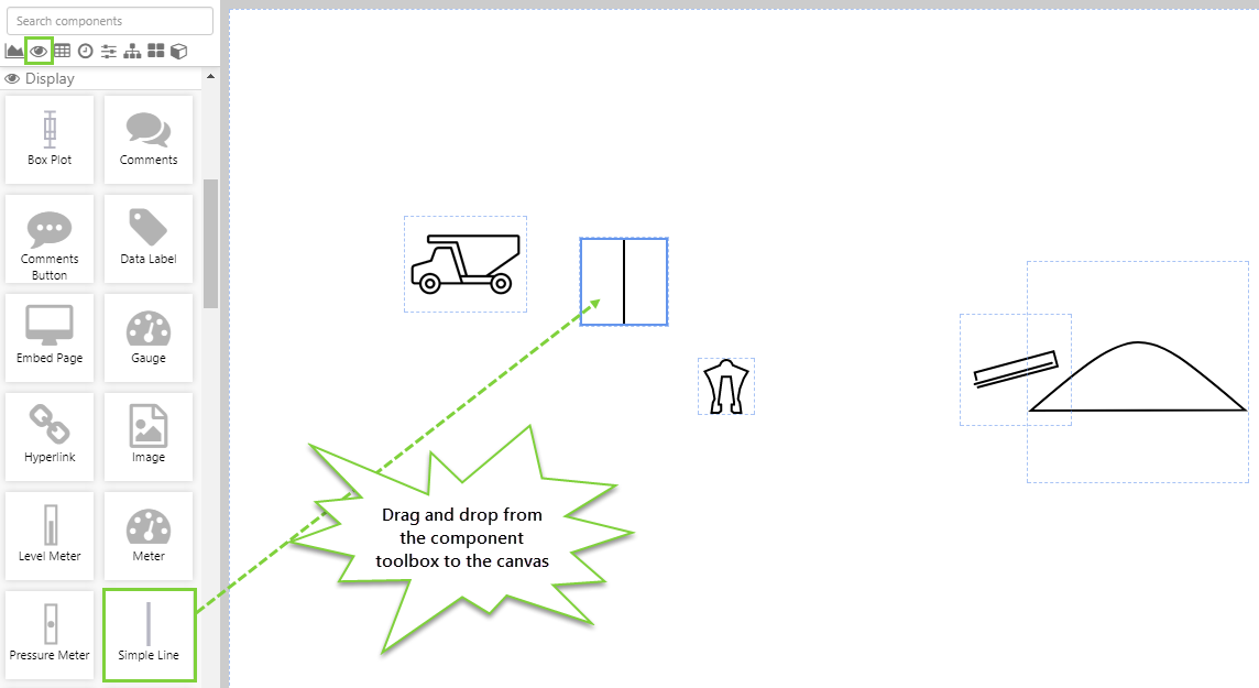Drag and drop the Simple Line component onto the canvas, positioned approximately as shown in the screenshot above. The Simple Line component is in the Display