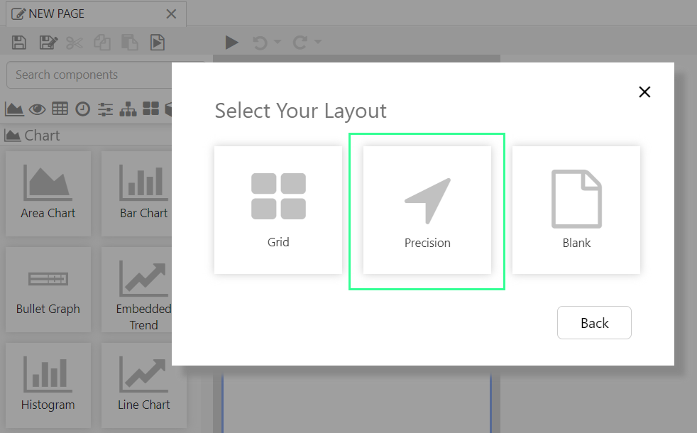 Before you start, click the New Page button on the Home tab of the ribbon. Choose the Precision layout.