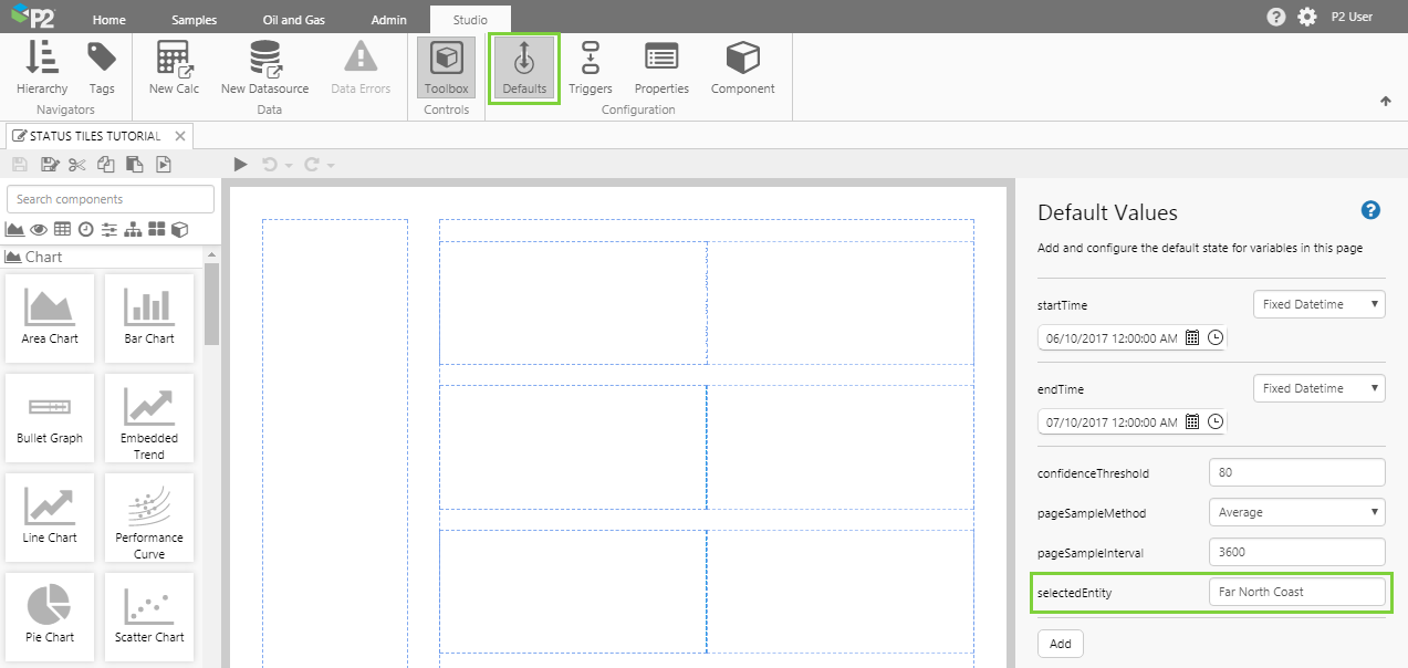 1. Open the Default Values panel, by clicking Defaults on the Studio ribbon tab.