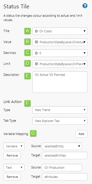 We'll add a link action to the first tile, to open a new trend. This trend will show the Oil Production attribute of the selected entity.