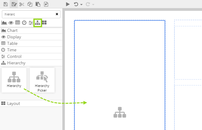 1. Drag and drop a Hierarchy component onto the top left grid cell of the base grid layout, as shown. The Hierarchy component is in the Hierarchy