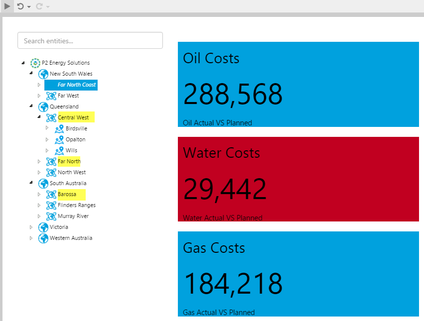 Note: The default Selected Entity for the hierarchy component is selectedEntity, so this will use the selectedEntity value you defined in the previous step: Far North Coast.