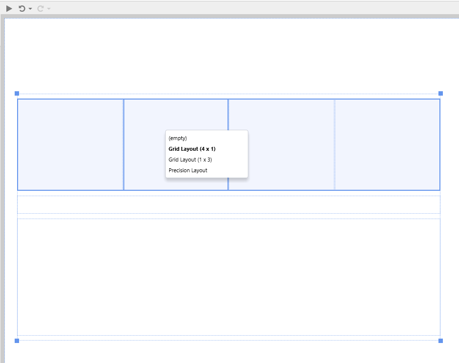 Drag and drop a second Grid Layout component onto the top row of the first Grid Layout. Give this four columns, with a Column Spacing of 1.
