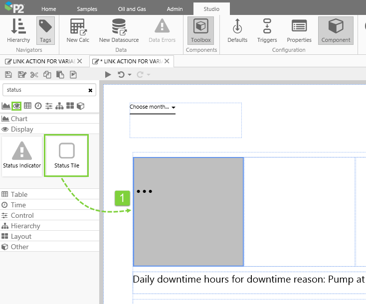 - Step 4. Add and configure a Status Tile with a Link Action to open a new trend.