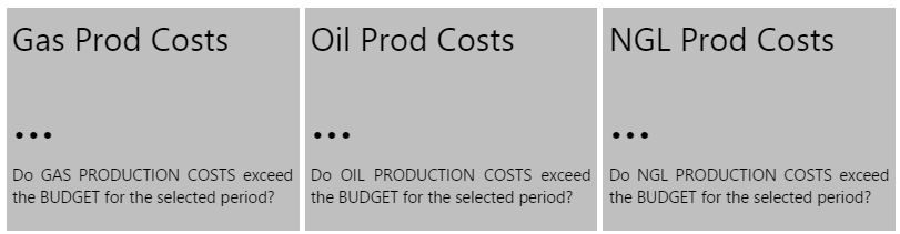 In the example below, Gas Production Costs are below budget (value is below limit), while Oil and NGL both have costs above their respective budgets (value exceeds limit).