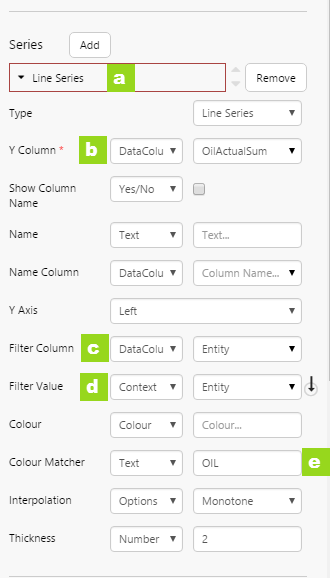 b. For the Y Column, select DataColumn and OilActualSum from the respective drop-down lists.