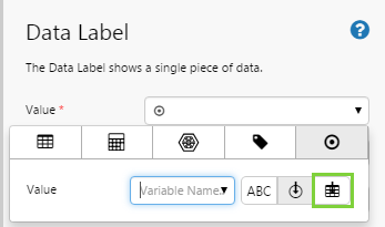 5. We click on the Data Label compomonent to configure it. Click the Value drop-down list, select the Value