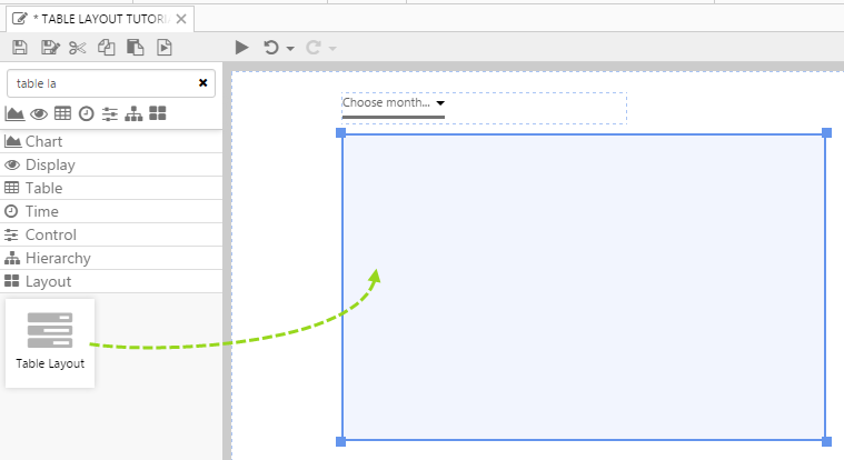 1. Drag and drop a Table Layout component below the Month Picker, and resize it by dragging the edges. The Table Layout is in the Layout